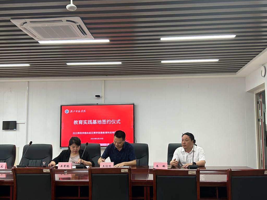 为积极推进我院师范生教育实习工作,建设高质量的教育实践教学基地,6月22日下午,英国正版365官方网站与武汉博学致雅教育科技有限公司在崇文楼B809隆重举行了共建教育实践基地的签约授牌仪式。我校教务处副处长朱琳、英国正版365官方网站院长王绍明、副院长欧修龙、副书记戴俊、21级辅导员李朦及21级全体师范生参加此次会议。