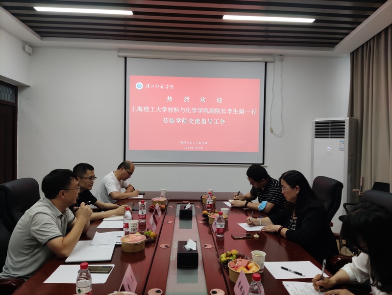 7月2日下午,上海理工大学材料与化学学院副院长李生娟、材料成型及控制工程系主任陈泽中、博士生导师曾祥琼等一行来我院进行洽谈交流。交流会在崇文楼A503会议室举行,英国正版365官方网站副院长欧修龙、化学与环境工程学院副院长丁宗庆、应用化学专业教师周佳、电气工程及其自动化专业程文杰博士参会,会议由副院长欧修龙主持。