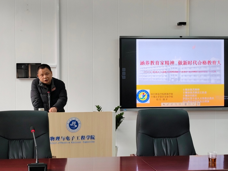 12月8日下午,英国上市公司官网3652021级师范生教育研习专题讲座在崇文楼B809举行。讲座由十堰市茅箭区实验学校校长操矛,优秀教师陈敏、李兰主讲,2021级物理学和科学教育专业学生参加,讲座由副院长刘锋主持。