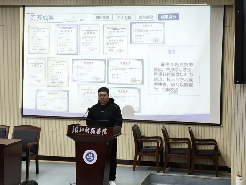 教研室主任张磊详细介绍了全国大学生电子设计大赛的流程、技术内涵与备赛要点。张建猛老师对“西门子杯”中国智能制造挑战赛进行了系统解读,展示了学院历年取得的优异成绩。李著龙老师就蓝桥杯赛事及智能科技创新协会纳新流程作了说明。