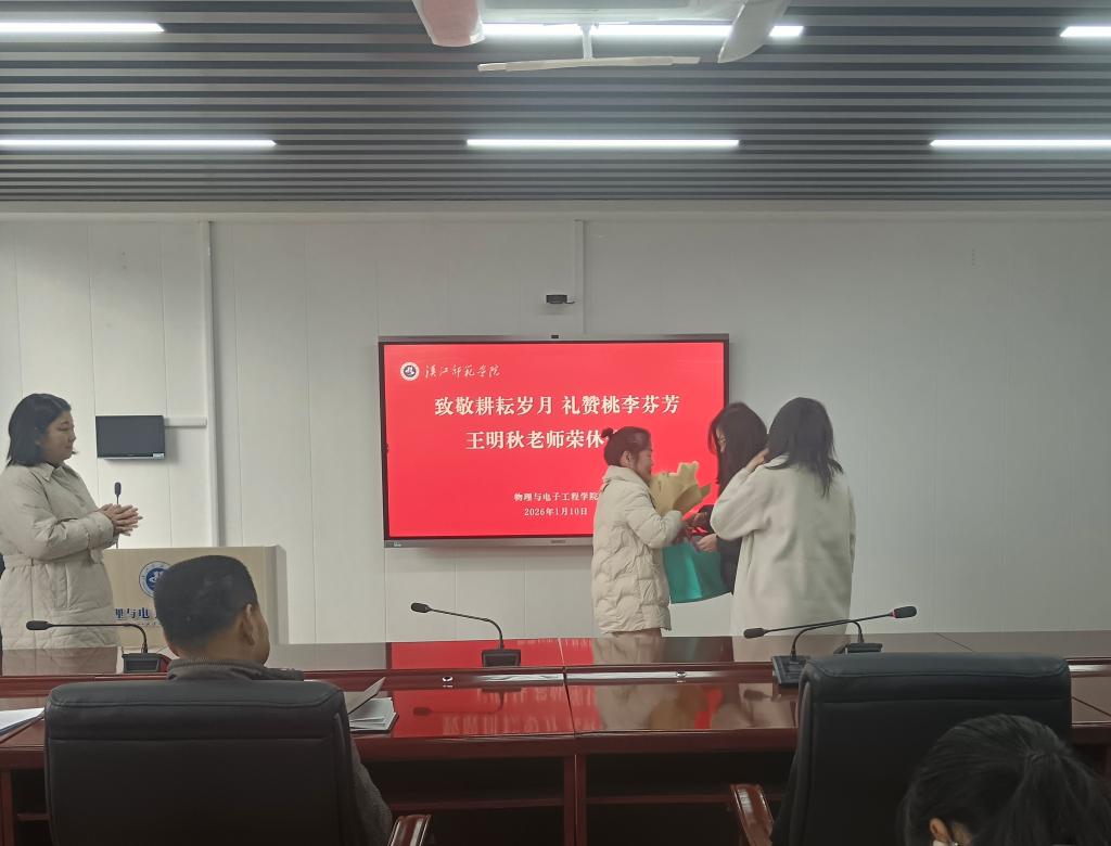 仪式中,学院向王明秋老师献上鲜花与纪念品,参会人员与王老师合影留念,共同定格这难忘的时刻。