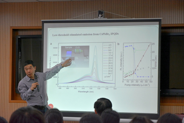 5月23日下午,新加坡南洋理工大学孙汉东博士受邀来到我校,在崇文楼B408为汽车与电子工程系师生作了题为“All-Inorganic Halide Perovskites for Light Emitting Applications”的学术报告。系主任何统洲主持报告。