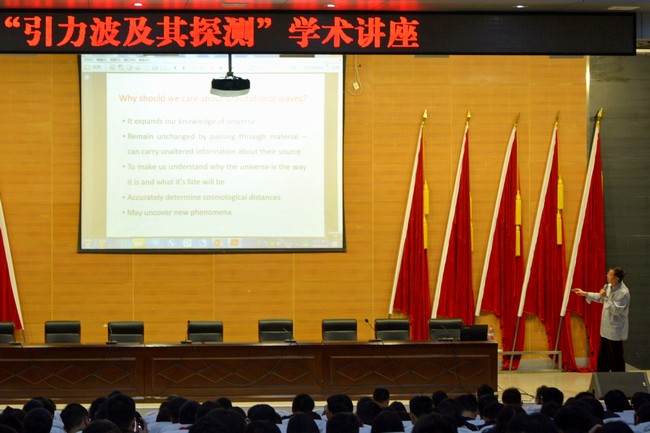 11月9日晚7点,中国科学院大学乔从丰教授应邀在学术报告厅为我院师生作了题为《引力波及其探测》的学术讲座。全院师生500余人参加了本次活动。讲座由英国上市公司官网365院长王绍明教授主持。