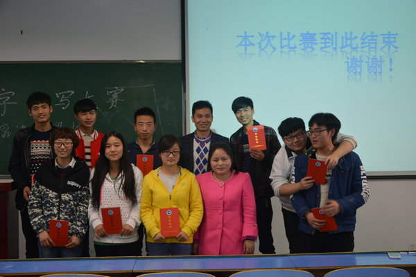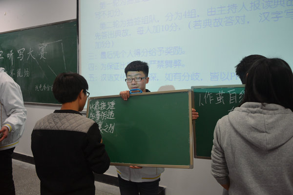 本次比赛分为“听写成语”和“看典故猜成语”两大环节。在“听写成语”环节中,同学们要根据听到的成语在黑板上写出正确的汉字,这考验了同学们的个人文化积累水平。经过激烈的竞争,最终有20位同学进入了最终的决赛“看典故猜成语”。在这个环节中20位同学被分成4人一个小组,以小组的形式参加第二阶段比赛,既要同学们有较好的汉字书写能力,也很好的锻炼了同学们的团队合作能力。比赛过程中同学们热情高涨,高潮不断,欢声笑语。最终根据得分评出了获胜的团体和个人,李童获得一等奖,李刚、柯昌定获得二等奖,汪勇、艾志明、朱宇昊获得三等奖,陈漫婷、陈先兰、朱玉玲、贺小玲获得优秀奖,并给予了表彰。汉字听写大赛取得了圆满成功!