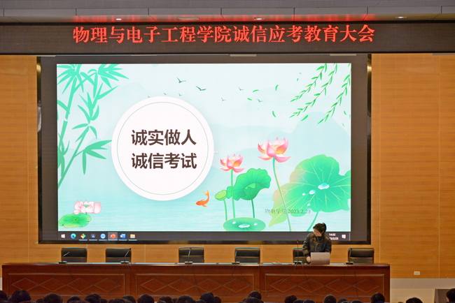 2023年2月23日下午2点半,英国正版365官方网站在图书馆报告厅举办了以“诚实做人 诚信应考”为主题的教育大会。党总支副书记张玉龙、辅导员李朦、范志鹏参加此次大会。