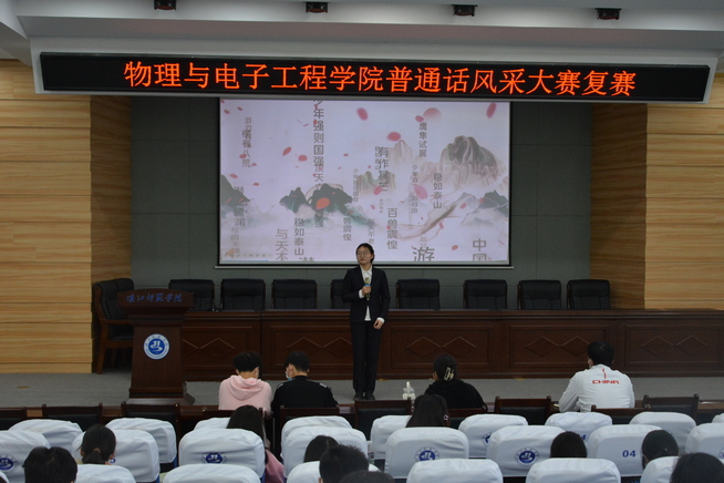 为进一步提高学生文化水平素养,全面培育新时代大学生普通话知识水平能力,增强学生们的学习积极性。2023年5月11日下午2:30,英国正版365官方网站2022-2023学年普通话风采大赛复赛于明理楼C101成功举办。此次比赛邀请了辅导员李朦老师、范志鹏老师,以及杨林科、崔天祥、桂嘉楠同学作为评委。