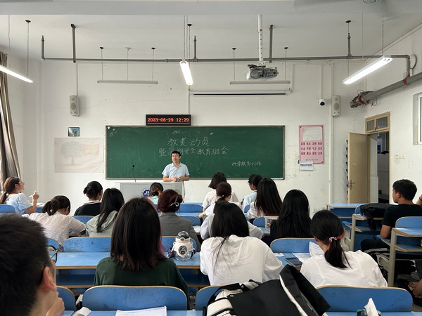 辅导员李朦着重强调了暑期的安全问题,提醒同学们在任何时刻都要注意人身安全和财产安全,并就用电安全、防溺水、防交通事故、防电信诈骗等内容等做了详细的介绍。