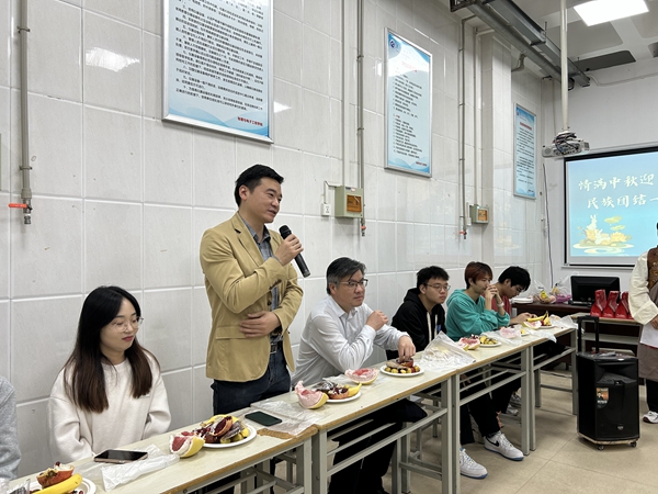 表演结束,与会师生唠家常、讲故事、问冷暖、话团结,会场氛围热烈,其乐融融。唐传球鼓励同学们努力学好专业知识,积极参加学校、学院的活动,大胆展示自我、提升自我,全面提升综合素质;同时各民族同学要相互尊重、相互包容、相互欣赏、相互学习、相互帮助,像石榴籽一样紧紧抱在一起,铸牢中华民族共同体意识;希望同学们掌握过硬本领,担当“强国一代”使命,将来为祖国建设贡献自己的青春和力量。