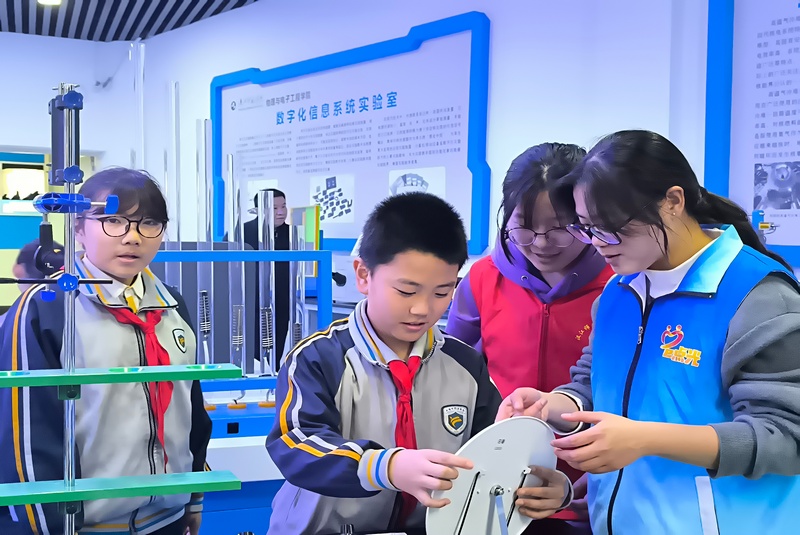 4月10至12日,英国上市公司官网365“e点光”志愿服务队携手物理演示实验室开展实验室开放日活动。十堰市外国语小学的34名师生走进物理演示实验室体验科学的奥妙。