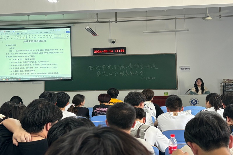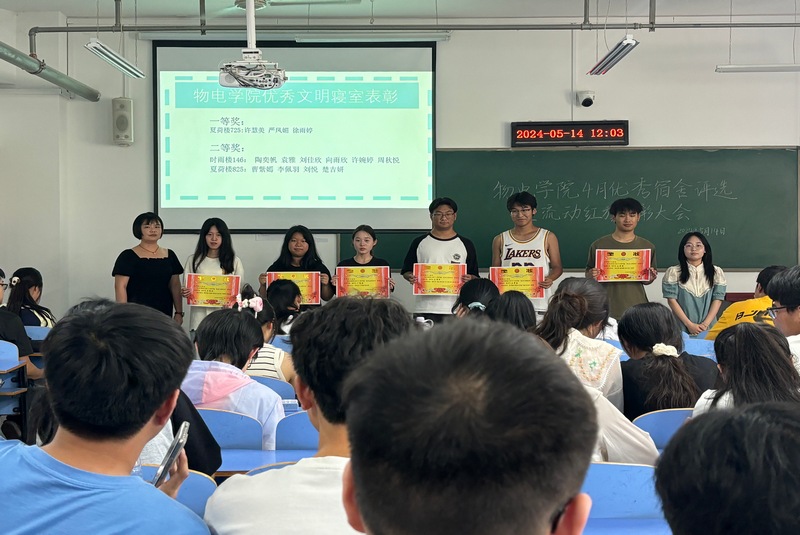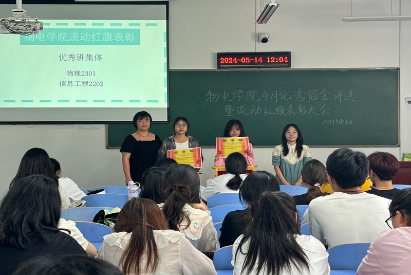 自律委员会和学生会的学生干部对4月查寝、早晚自习以及教室卫生等方面情况进行了总结,指出了存在的问题,提出了改进建议与要求。最终,夏荷楼725等6个宿舍荣获4月“优秀文明宿舍”称号,物理2301和信息工程2202荣获“优秀班集体”称号,与会老师为先进集体颁发了奖状并合影留念。
