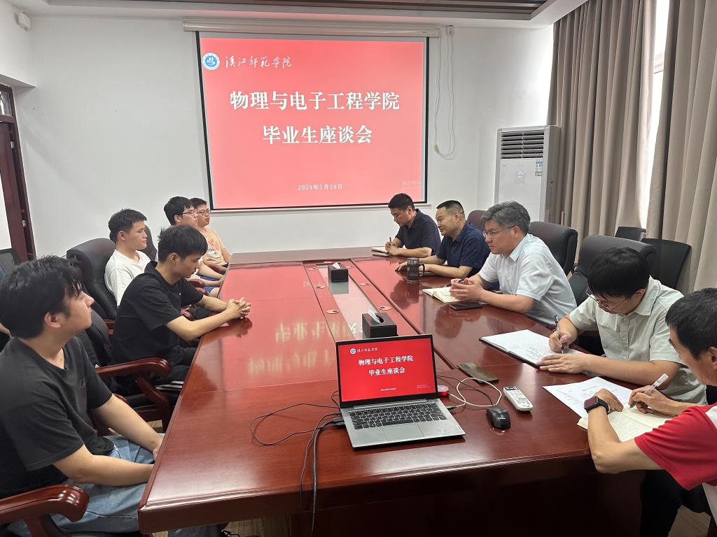 5月28日下午,英国正版365官方网站在崇文楼A503召开了2024届毕业生代表座谈会。院长王绍明、院分党委书记唐传球、副院长欧修龙、副书记戴俊、教学科研办公室主任陈智、2024届毕业生代表参加了会议。