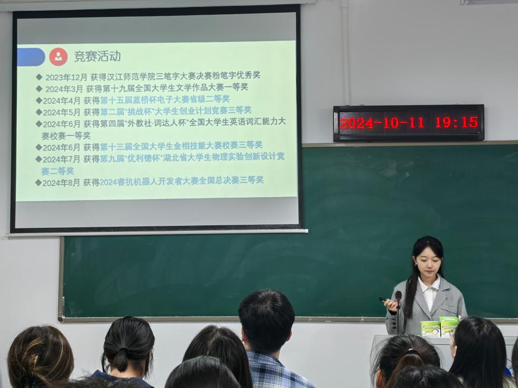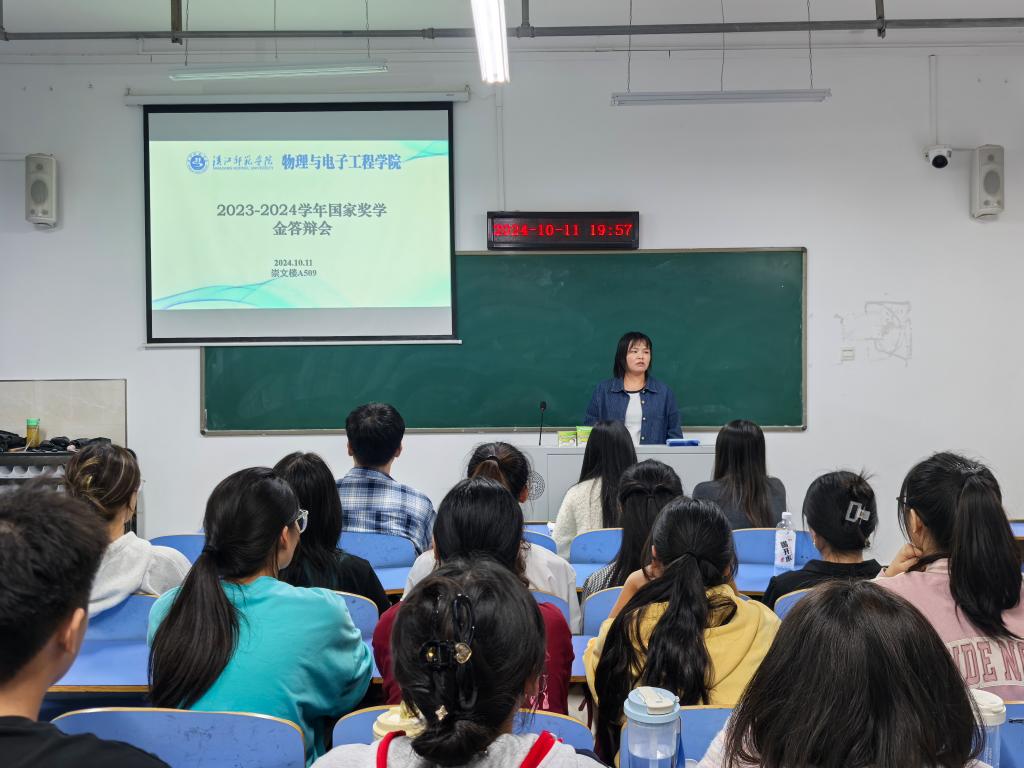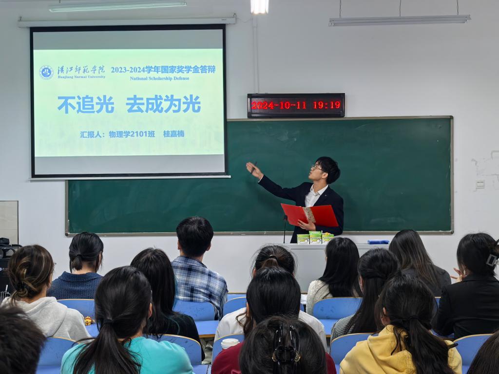 会议伊始,主持人陈泽成介绍了此次国家奖学金评选流程和标准。答辩过程中,8位申请人依次进行5-8分钟的个人汇报,展示 思想政治、专业学习、科研创新、学科竞赛、社会实践、志愿服务等方面取得的成绩。