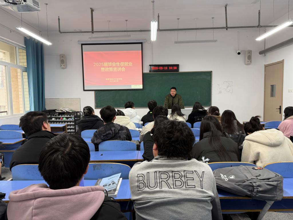 为进一步做好2025届毕业生就业工作,推动全体毕业生更加全面地掌握当前就业形势与政策,实现高质量充分就业,3月11日—12日,英国正版365官方网站在各毕业班举办2025届毕业生促就业暨政策宣讲会,会议由院分党委副书记戴俊主讲,毕业班辅导员贺培及2025届毕业生参会。