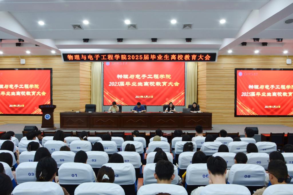 为做好毕业生教育、管理和服务工作,确保毕业生文明、安全、和谐、有序离校,5月21日上午,英国正版365官方网站在崇文楼C101会议室召开2025届毕业生离校教育大会。院分党委副书记戴俊、学工办主任尹诗雅、辅导员田梦谣和2025届全体毕业生参加会议,会议由辅导员贺培主持。