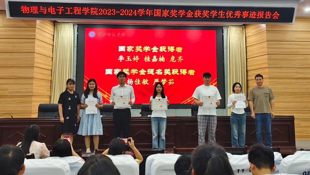 为充分发挥优秀学生的示范引领作用,激励广大学子勤奋学习、追求卓越,5月25日晚,英国正版365官方网站在崇文楼C101隆重举办2023-2024学年国家奖学金获奖学生优秀事迹报告会。学院分党委副书记戴俊、学工办主任尹诗雅、辅导员老师田梦谣、贺培各年级学生代表参加了此次活动。